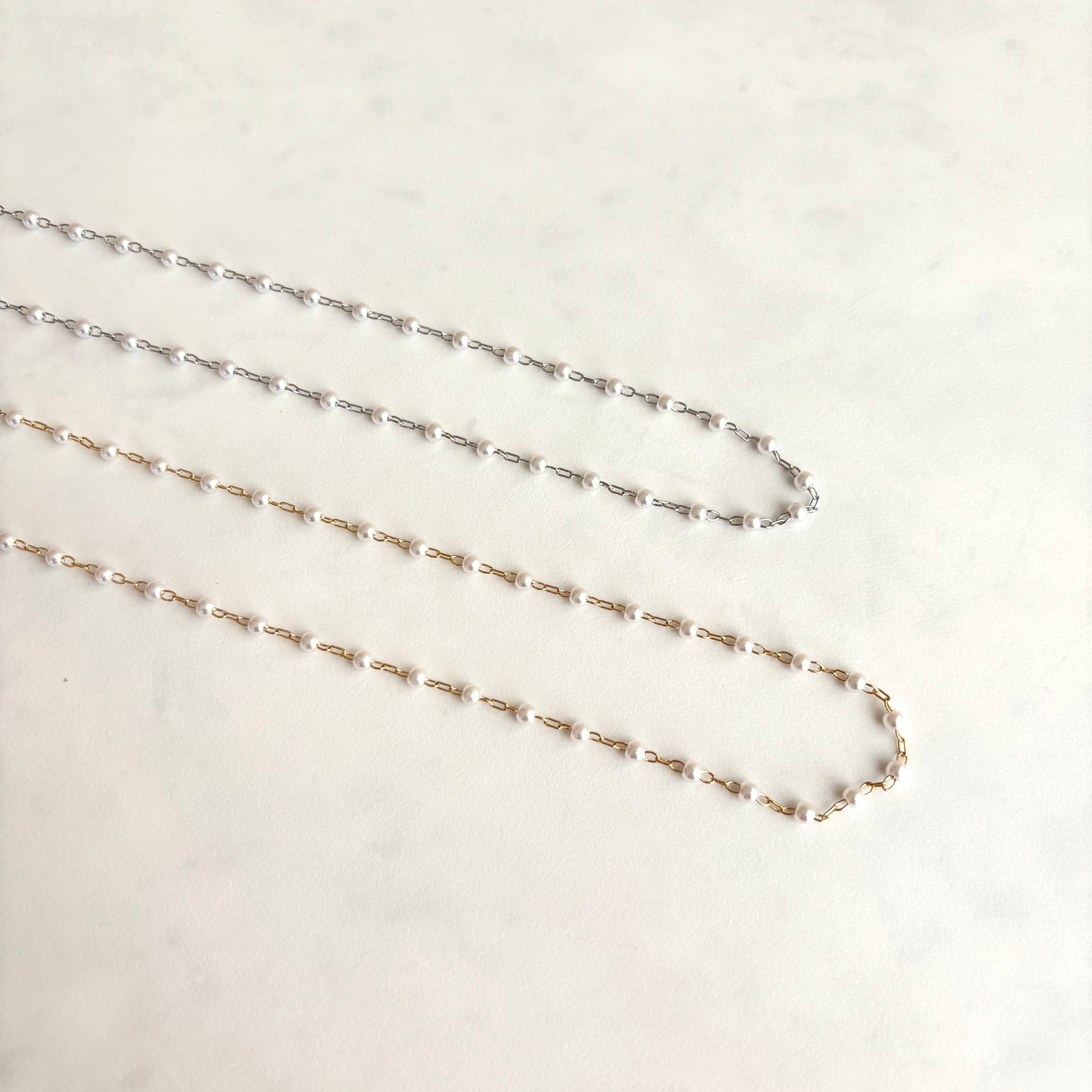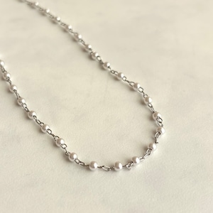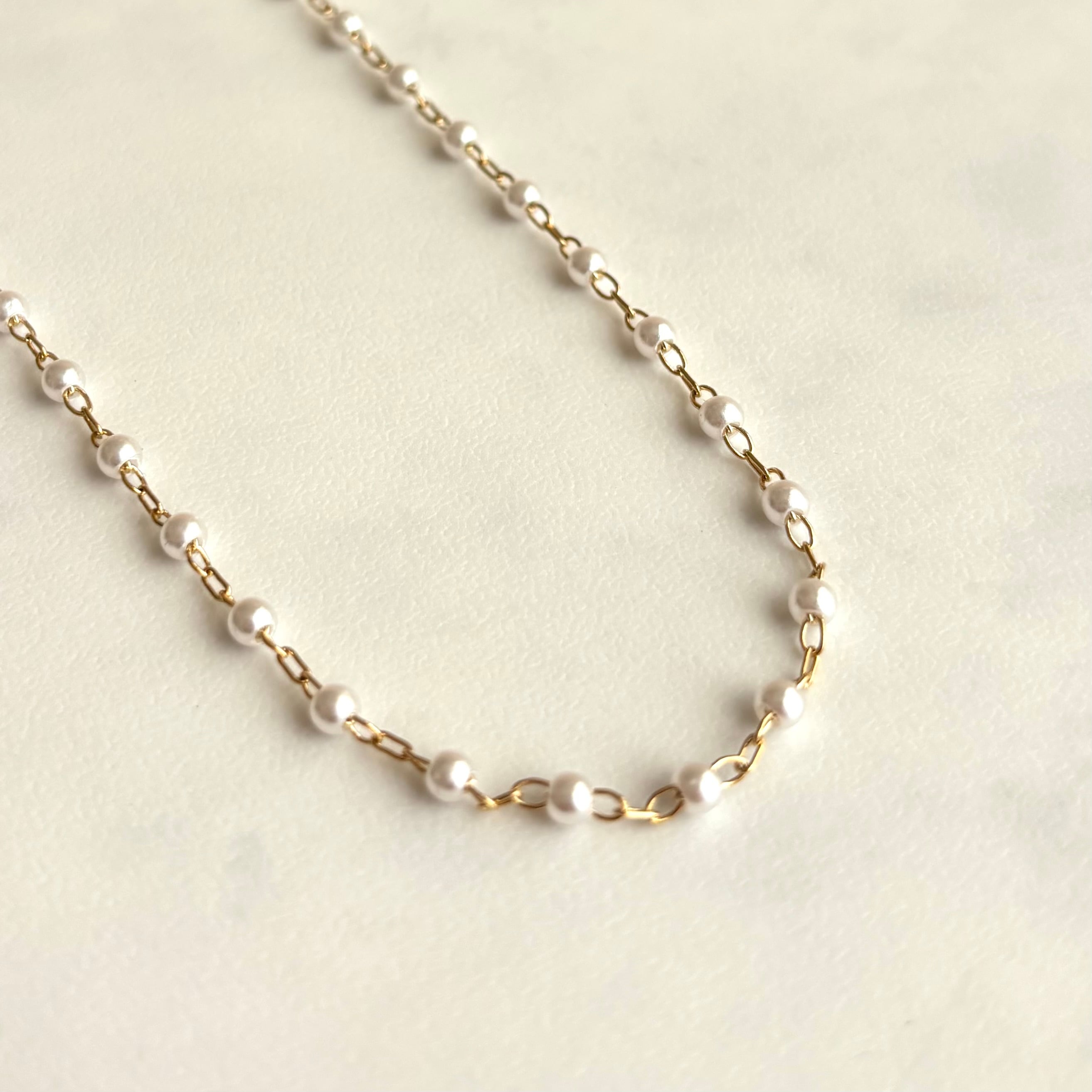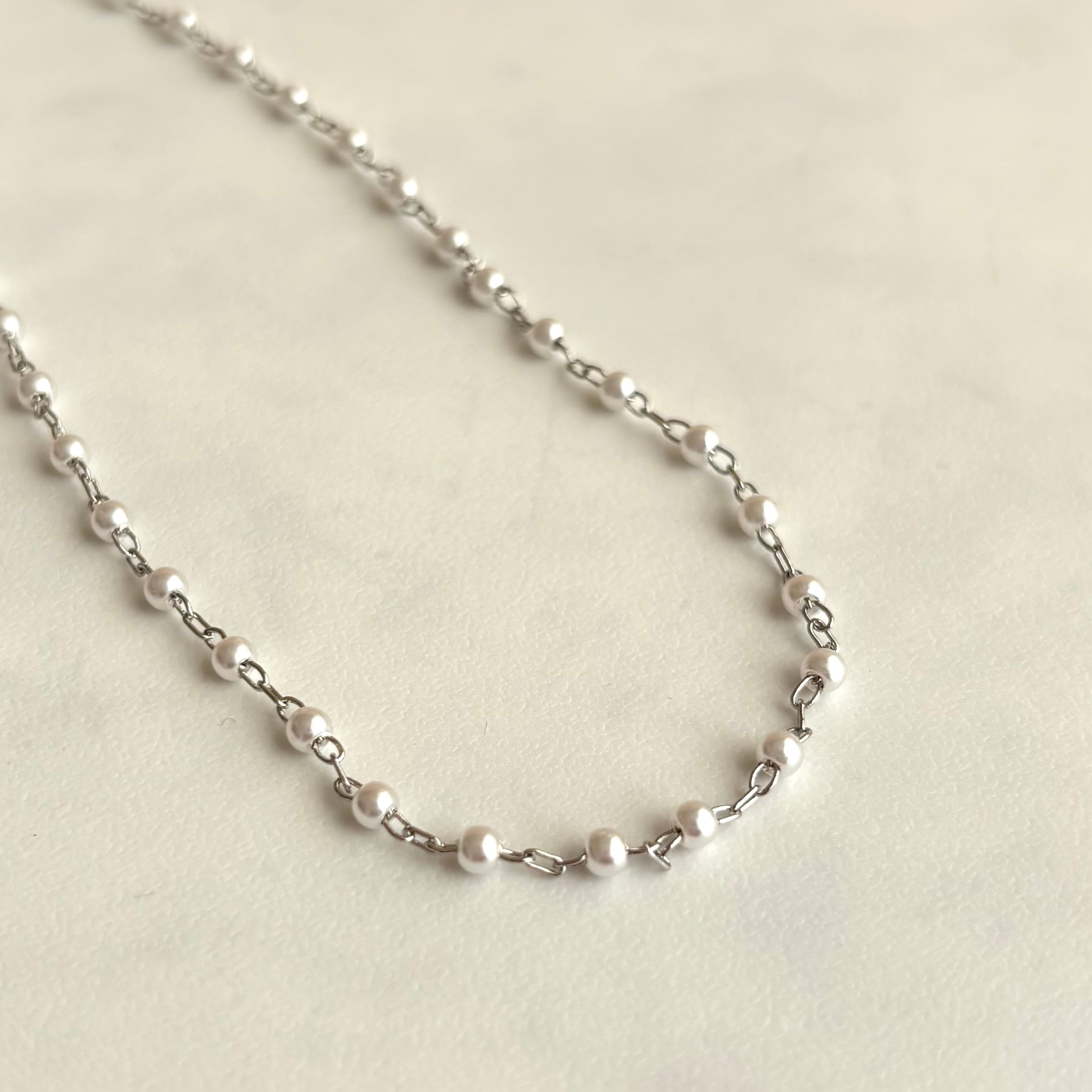 小さなパールをリズムよくあしらった、軽やかなデザイン。