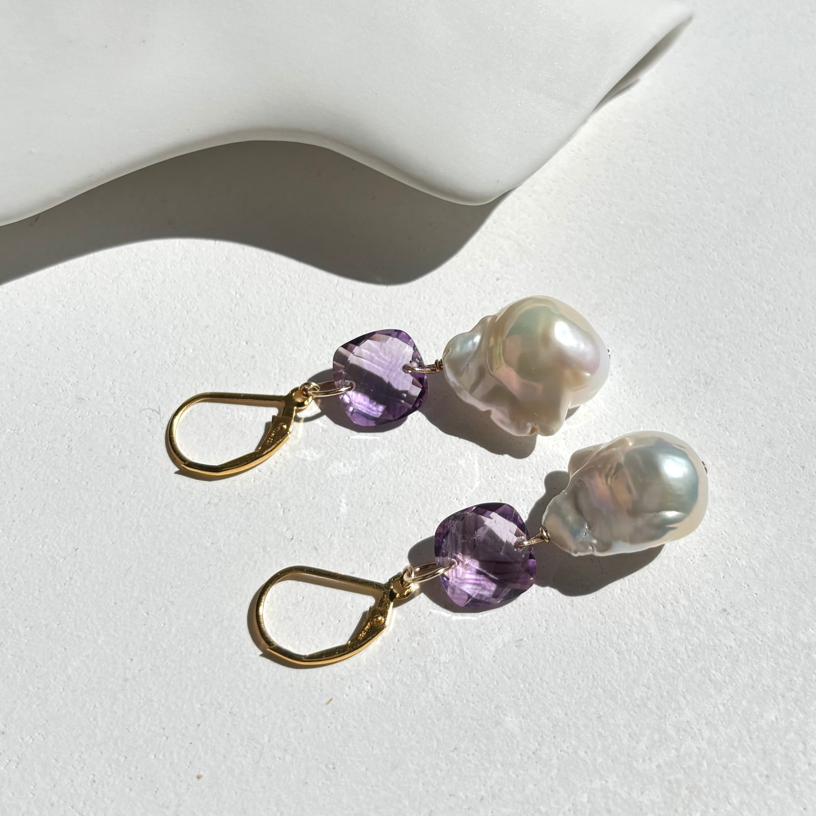 ラフなかたちのパールと、深みのある輝きを放つアメシストのコントラスト。