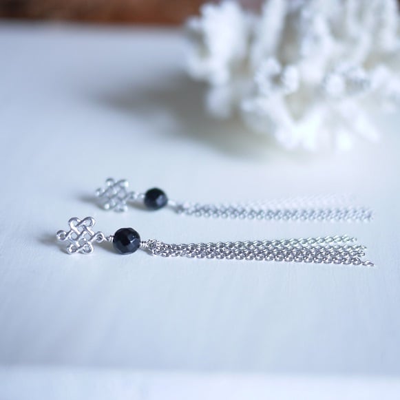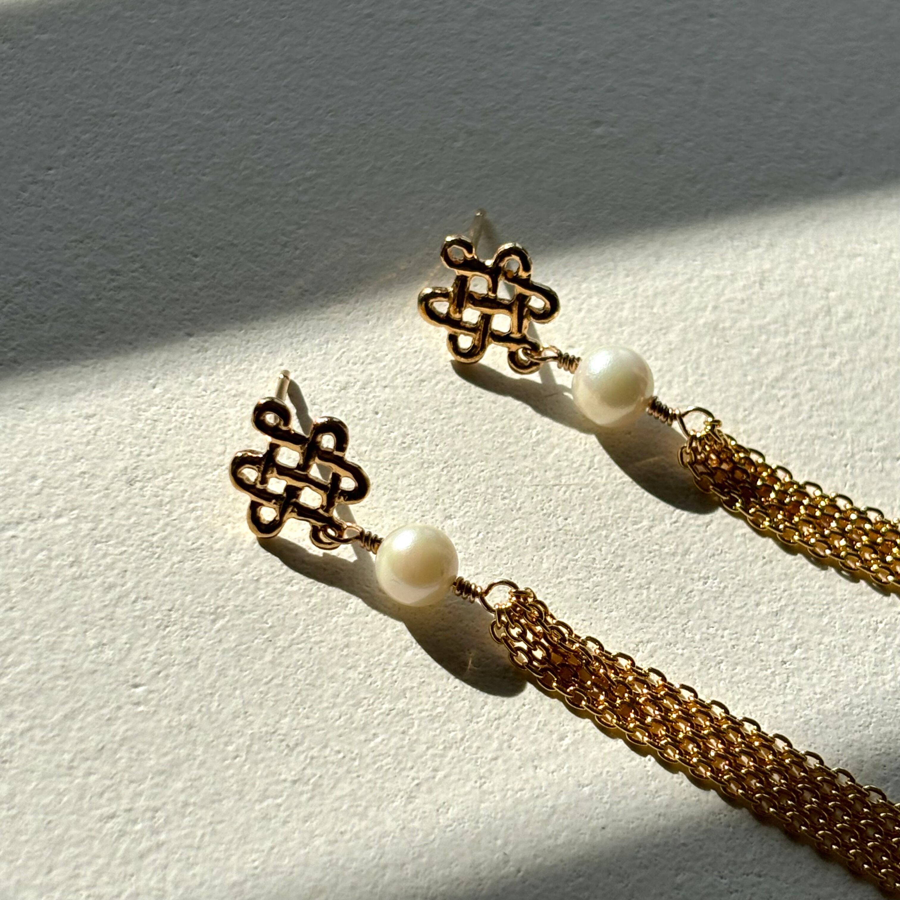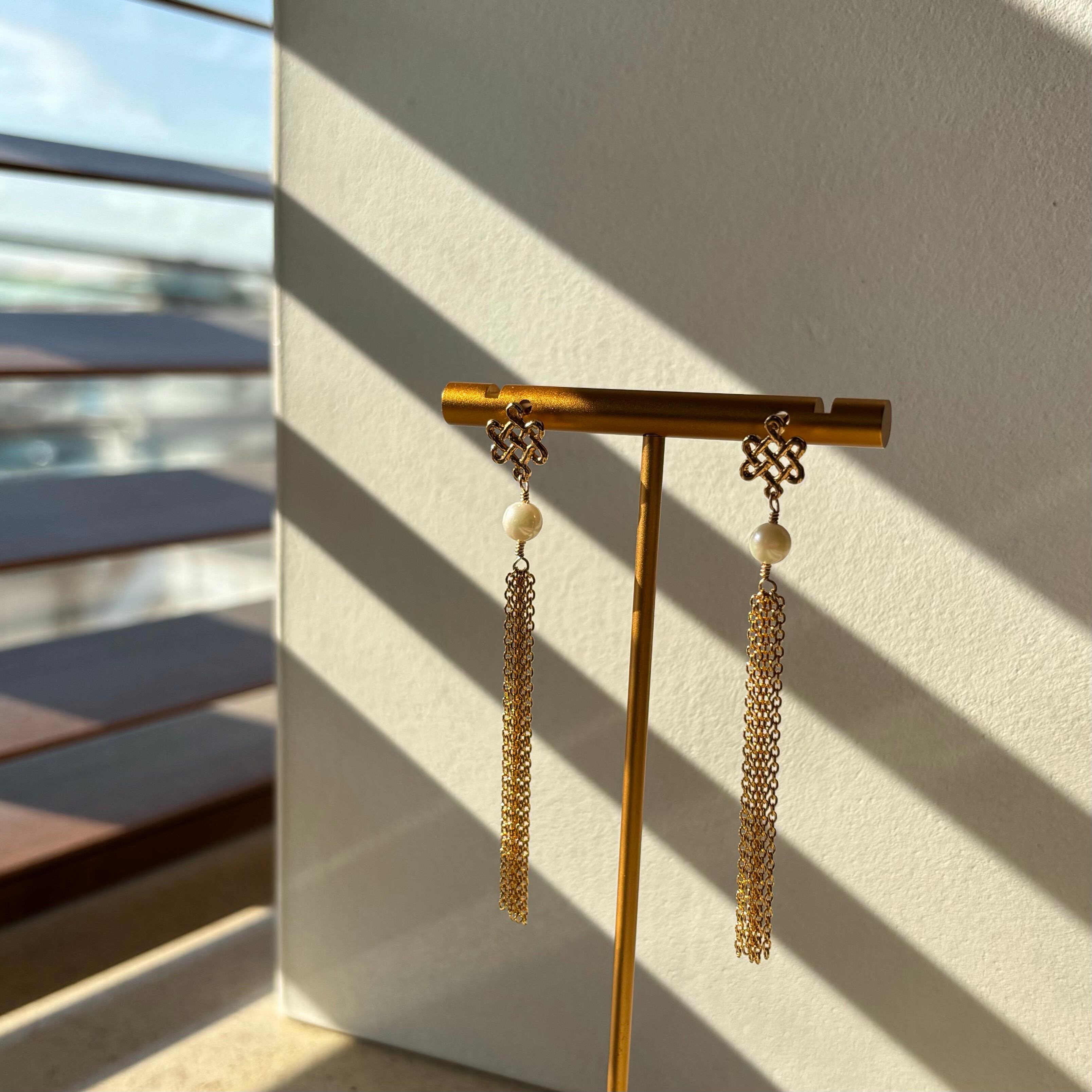 Beautiful delicate Asian knot designed earrings with chain tassels.